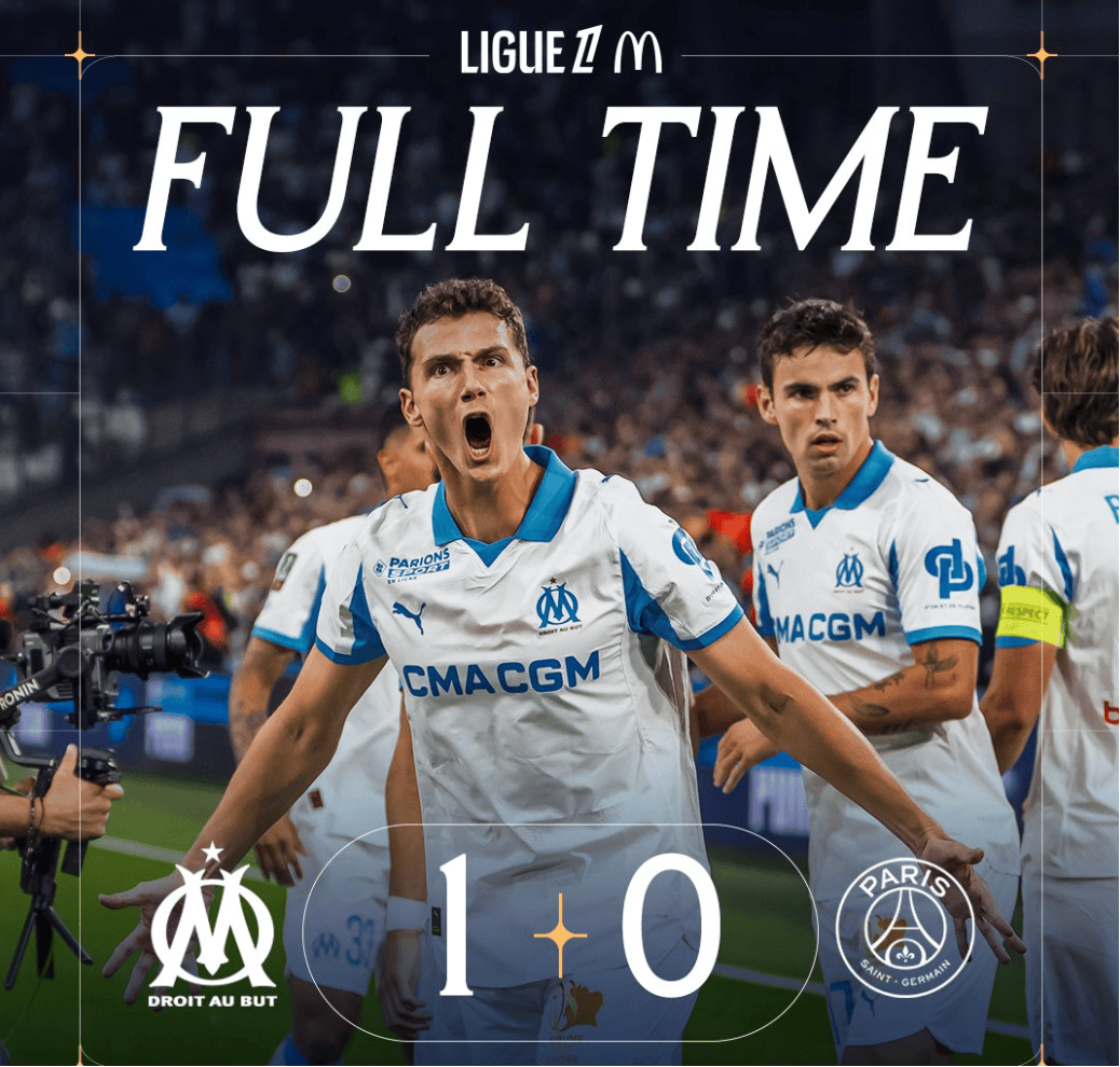 马赛在上周的欧冠联赛中客场1-2不敌皇家马德里,上半场小维阿攻破了皇家马德里大门,罗德里格造点,姆巴佩主罚点球扳平比分。下半场卡瓦哈尔顶撞马赛门将鲁利被罚出场,但Vinicius Junior禁区内造点,姆巴佩主罚点球梅开二度逆转比分。马赛最终因争议判罚输掉比赛,但德泽尔比的球队昂首走出伯纳乌球场。马赛原本上周日和巴黎圣日尔曼进行国家德比,但因天气恶劣延期到周一进行,这和金球奖颁奖晚会冲突。马赛在首发阵容中撤下了奥巴梅杨、梅迪纳和受伤的孔多比亚,Nayef Aguerd、Igor Paixao和Amine Gouiri进入首发阵容,上半场格林伍德传中,Nayef Aguerd在和巴黎圣日尔曼门将舍瓦利耶的争抢中胜出头球破门,Amine Gouiri上半场射门击中横梁,下半场马赛主帅德泽尔比被罚出场,但马赛还是获得了比赛胜利。